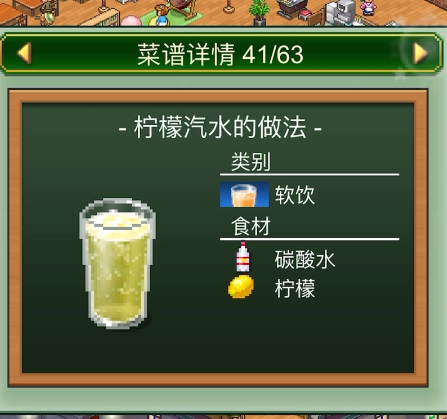 最后介绍的是软饮,它在整个四季都有不少人喜欢点。目前顾客比较喜欢的有各类汽水。大家想要制作果汁汽水的话首先需要做的就是将汽水给制作出来,这个需要用美味的水+碳酸水来进行制作。