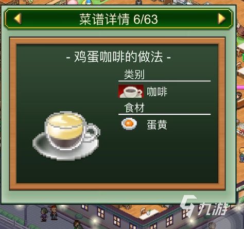 我们首先介绍的便是该作的咖啡,咖啡是游戏最基本也是最核心的食物。刚一开始咱们便解锁了咖啡。咱们首先介绍的第一个是鸡蛋咖啡,这个是需要我们使用蛋黄+咖啡的组合便可以合成,在中期属于比较不错的咖啡。第二个则是维也纳咖啡,这个需要鲜奶油+咖啡的组合可以合成出来,在推出后点的客人还是比较多的。