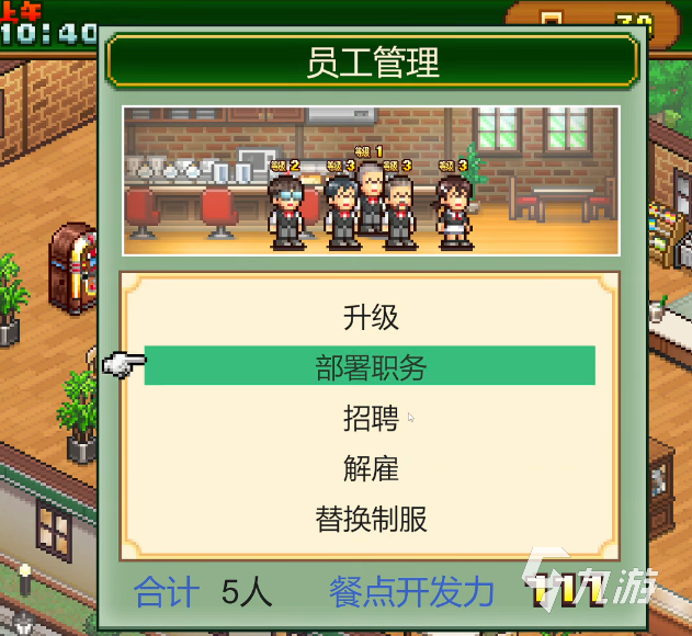 作为店主除了要关注店铺的经营,同时也要关注员工的管理。在游戏过程中玩家可以通过员工券的方式来扩充员工,每个员工有不同的技能,比如说擅长增加香气、增加甜度、增加上餐速度等,可以依据他们的技能来安排岗位,在后续的员工管理中可以利用培训来提升他们的技能效果。