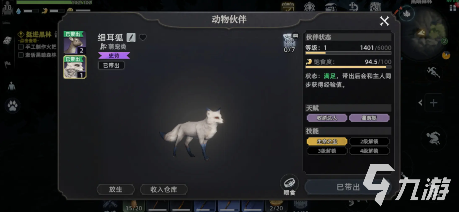 雪原狼也非常不错,它的能力是拾取地面的道具,毕竟很多朋友在战斗时,会由于遗忘,导致很多资源没有收集,造成浪费,但是如果有该宠物,对于初期资源的积累还是帮助很大的,不会错过一些资源材料。