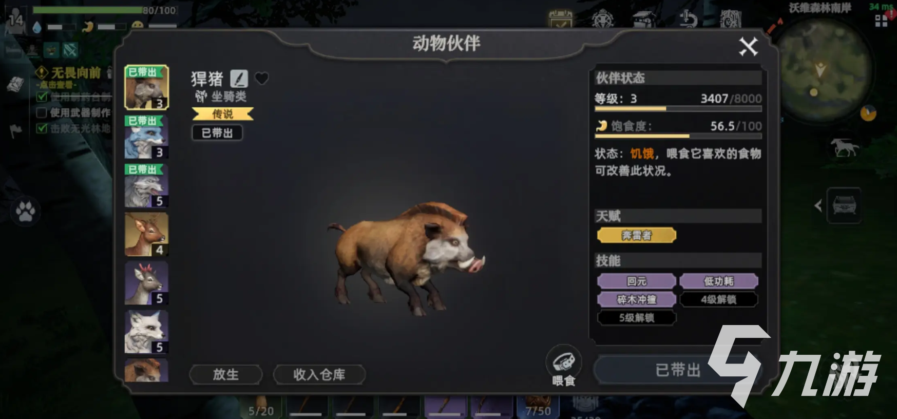 接下来推荐的就是”碎木野猪”,这也是新手朋友不得多得的好伙伴,这个宠物的主要作用就是采集,非常擅长收集木材,前期不管是建设家园,还是说制作工具,木材的需求量都是很大的,它能帮助朋友们快速收集大量木材,加快发展进度。