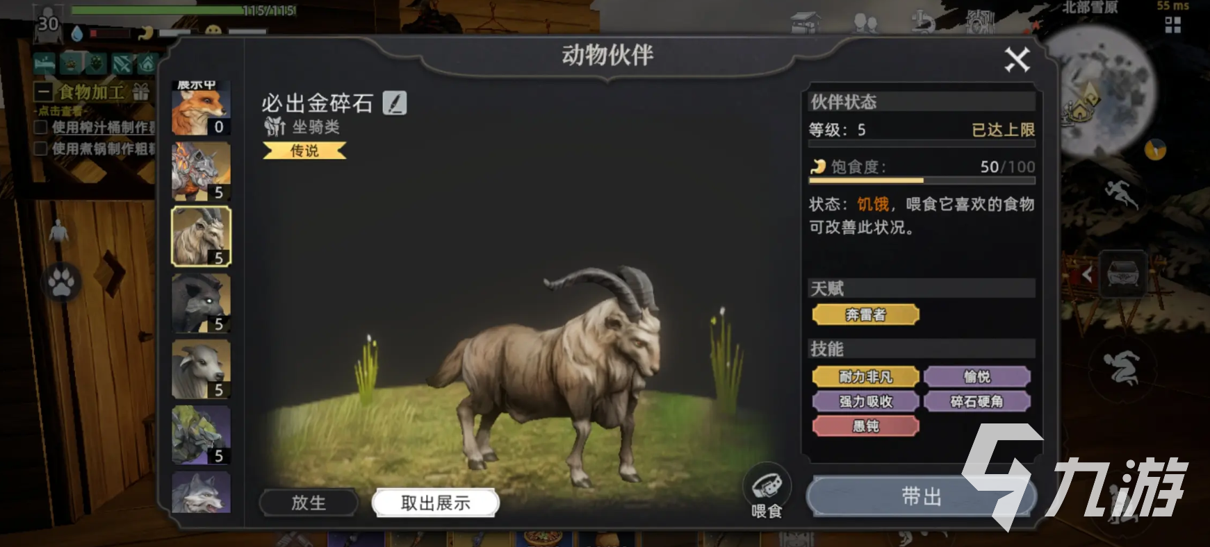 第三个推荐下”山羊”,这也是对采集非常要助益的宠物,主要是擅长采集石材,在矿区或者石头比较多的地方,可快速累积石头,这对前期房屋的防御工事,以及工具制作帮助作用很大,在雪山混沌光球区域就有较大概率捕获。
