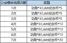 活动规则:活动期间,完成公会使命达到指定的次数,即可获得对应阶段的奖励。