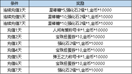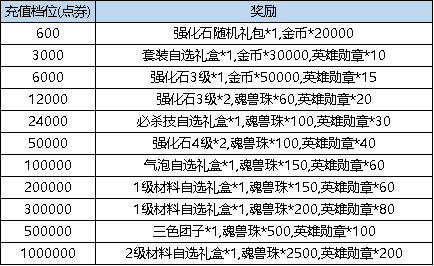 活动规则:活动期间,累计充值点券达到指定额度,即可获得对应档位的奖励。