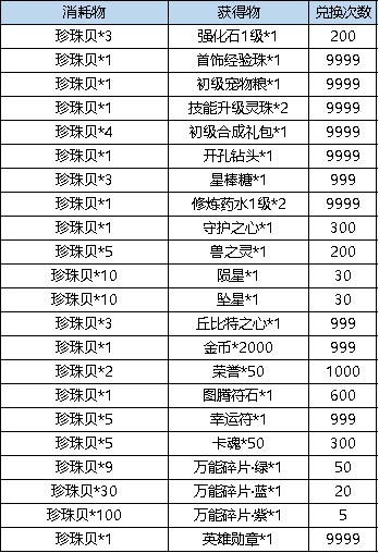 (注意:1.该活动为每日0点重置;2.珍珠贝:用于珍珠贝兑换活动兑换材料)