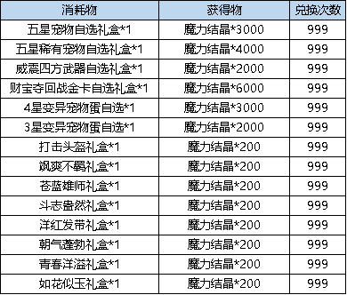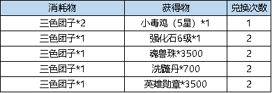 活动规则:消耗指定道具可兑换指定道具,注意限购次数及兑换物。