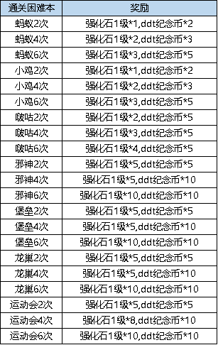 活动规则:活动期间,通关困难副本达到指定的次数,即可获得对应阶段的奖励。