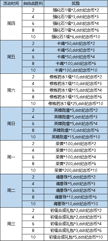 活动规则:活动期间,自由战获胜达到指定的次数,即可获得对应阶段的奖励。