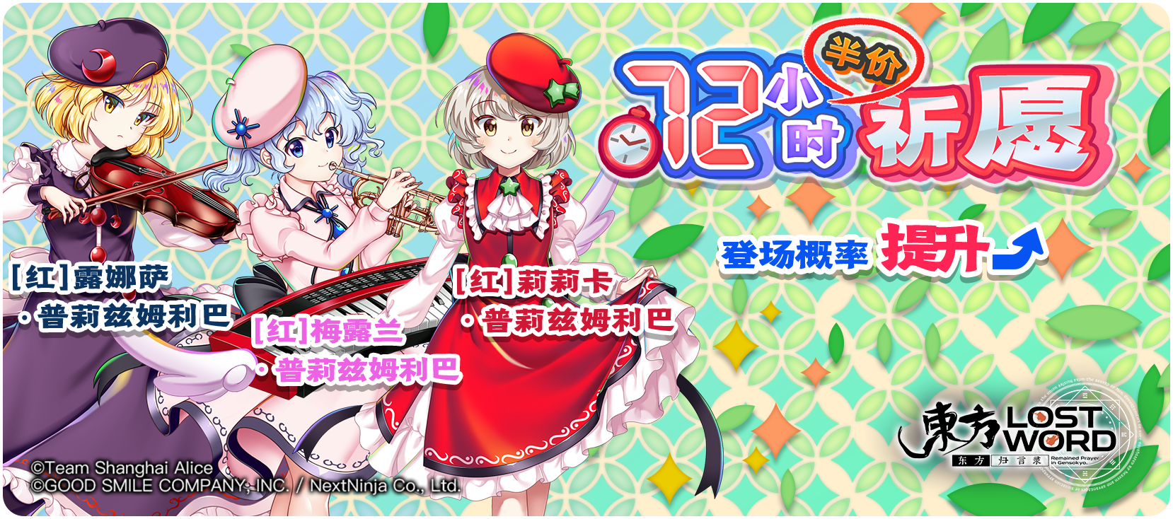 72小时限定神结晶半价祈愿(300神结晶),共3次。