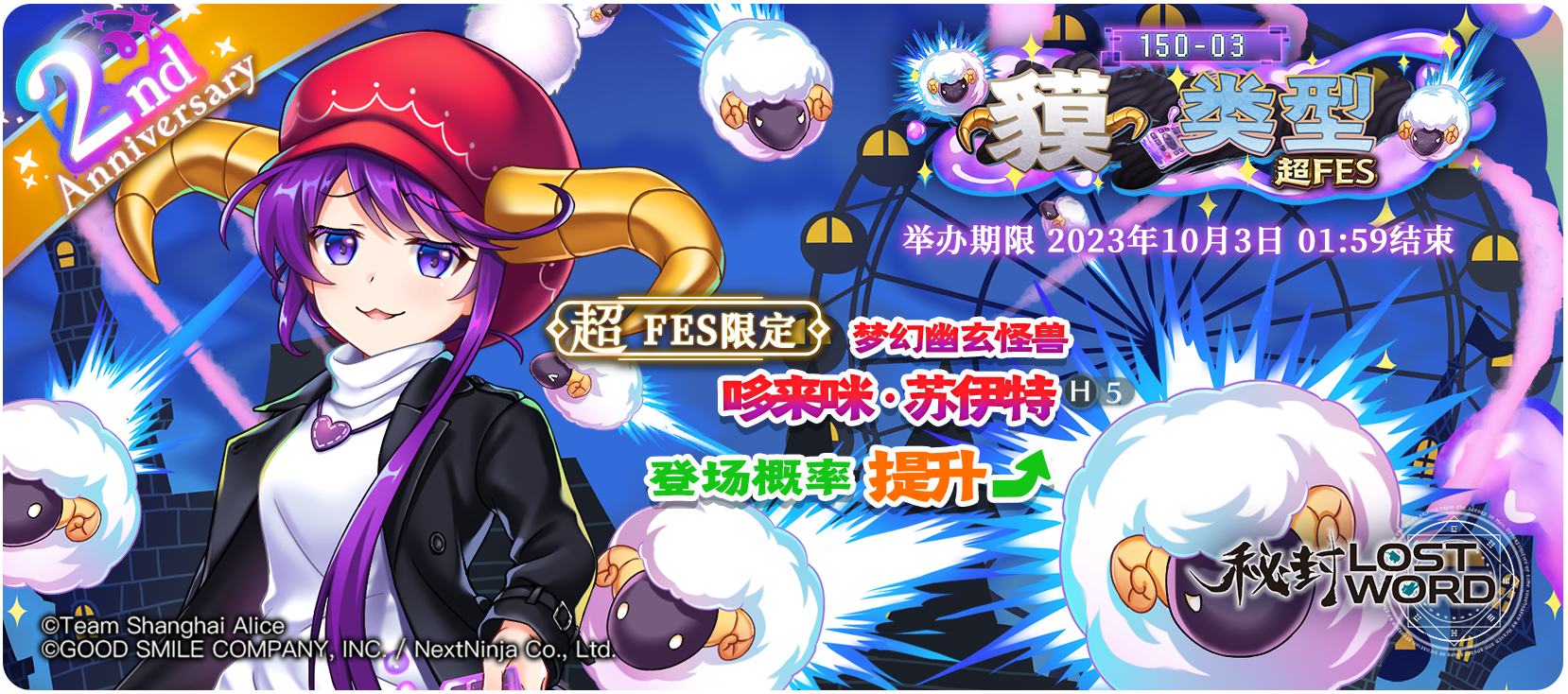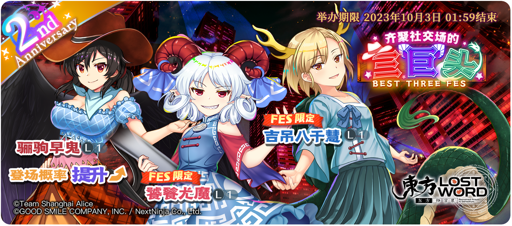 饕餮尤魔、吉吊八千慧和骊驹早鬼登场概率提升的FES限定祈愿!