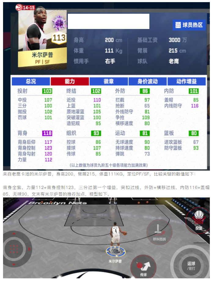 手机游戏> 美职篮巅峰对决> 游戏新闻> 【球员测评】冷门球员测评系列-米尔萨普
