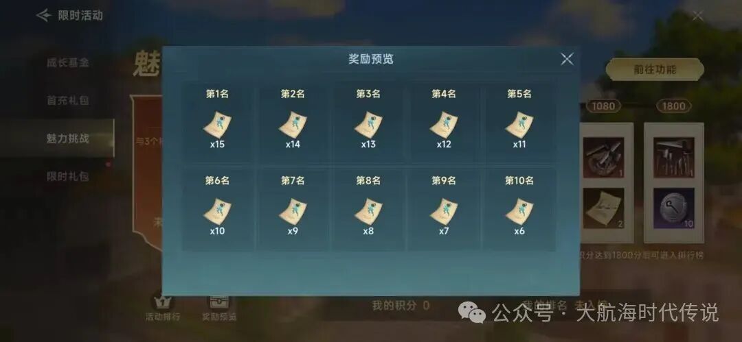 积分达到满分之后,可以进入活动积分排行榜。活动结束后,可以领取对应的排名奖励。