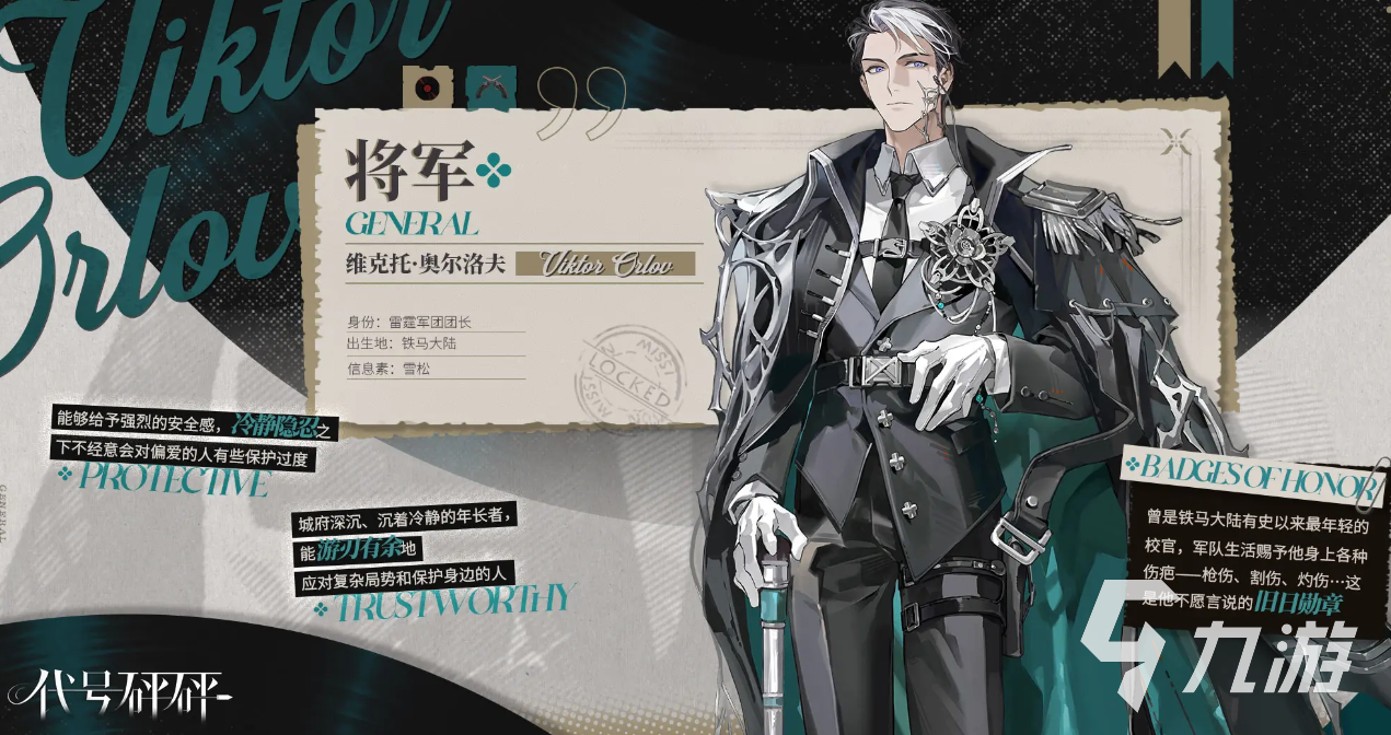 外观方面,他身着黑色军官服搭配斗篷,清冷面容配以额前白色短发,双眼冷静锐利,展现出的是禁欲系气质和独特人格魅力。