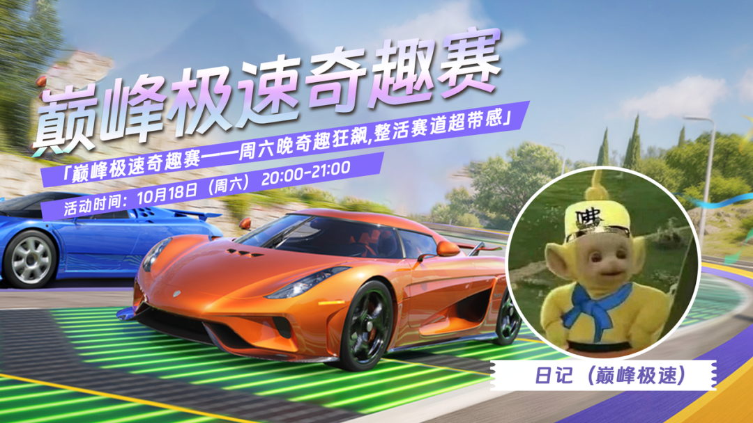 除此以外,车手们也记得锁定今晚20:00-21:00直播间,骚操作不断的爱播“日记(巅峰极速)”将亲自试水奇趣赛场新奇玩法,与车手们一同体验巅峰极速的奇趣爆改!