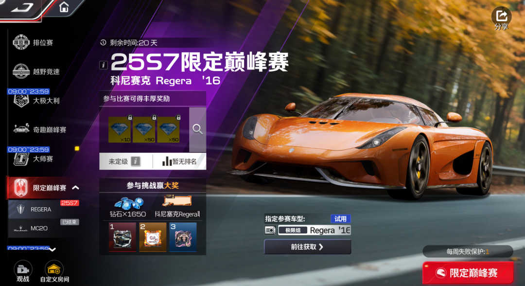 - 《巅峰极速》巅峰科尼赛克 Regera'16