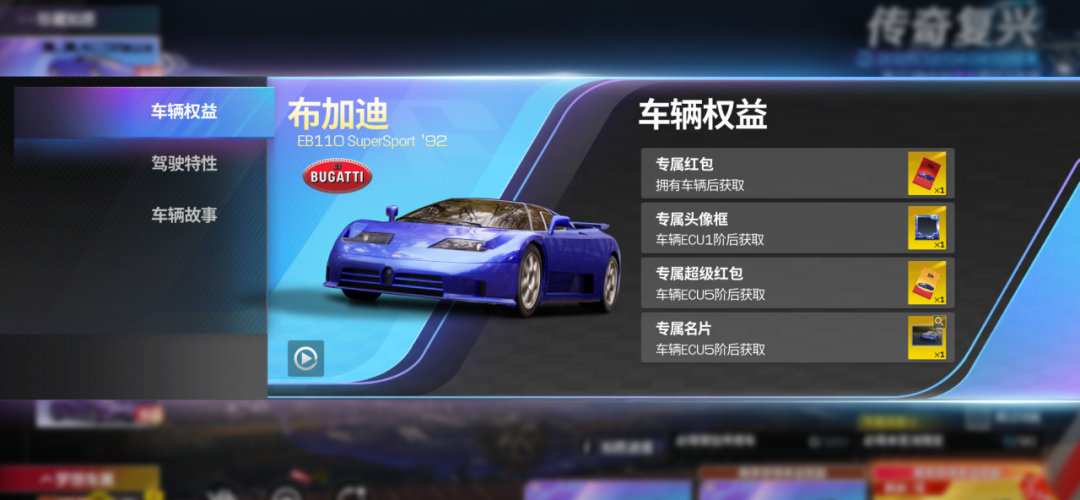 在《巅峰极速》的传奇车库里,每一台布加迪都是时代的印记,而EB110无疑是其中最特别的传承者