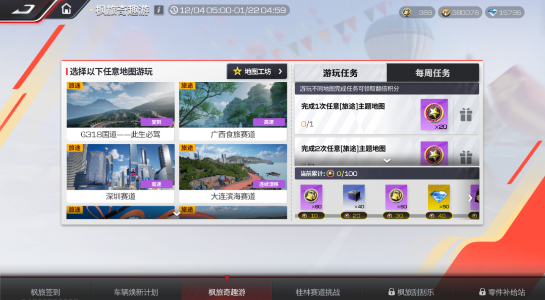 活动期间参与“枫旅奇趣游”地图挑战赢积分,累计积分可获得钻石、排位激励分等奖励,车手们快来体验一番吧!