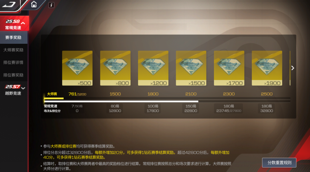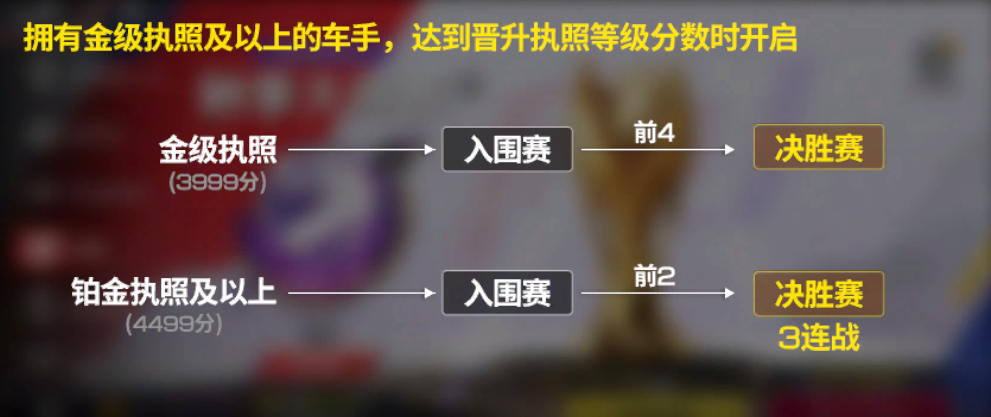 在大师晋级赛中获得最终胜利将会固定获得+51分奖励。若车手不幸在【入围赛】阶段失败,需要重新积累分数后再参与晋级赛;