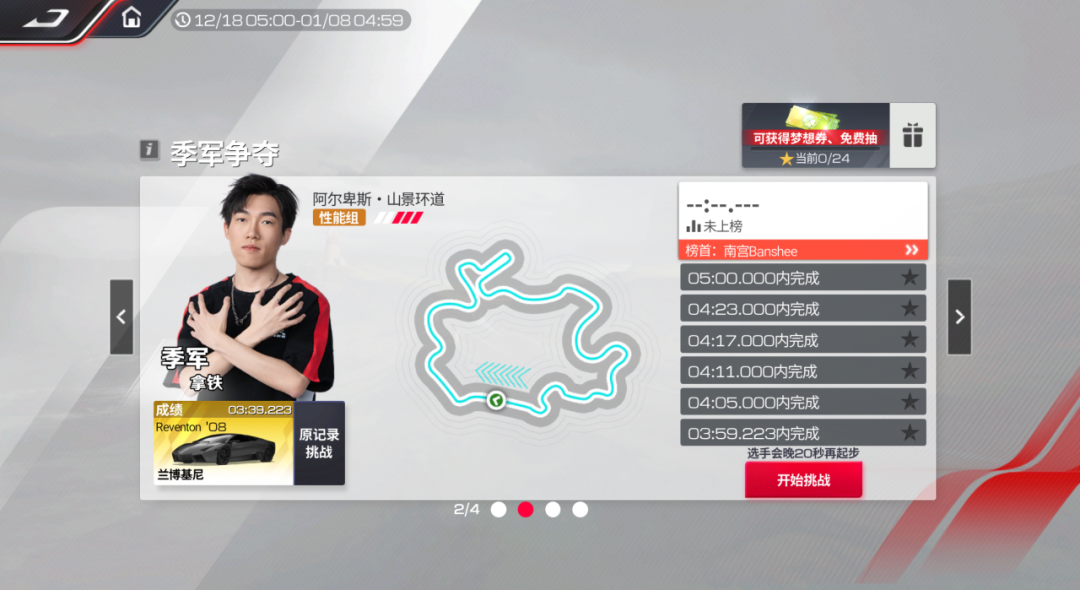 这个能让大家热血沸腾的活动正是——斯巴鲁车神挑战!在这里,你能和斯巴鲁车神计划4强选手的巅峰身影在线battle,正面硬刚他们的赛道纪录;在这里,只要敢冲敢拼、成功超越,就能获得免费抽奖券、梦想奖券福利!