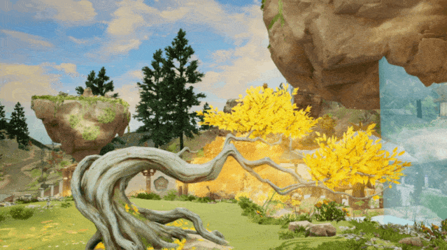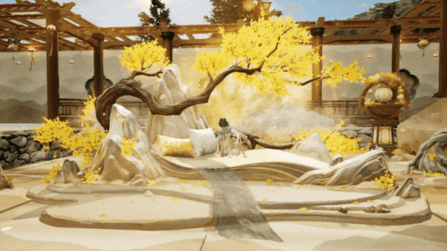 金色枝桠环绕白玉假山