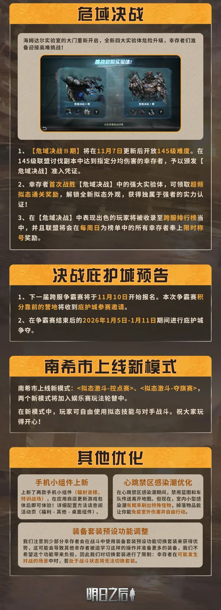 明日之后 废土守护神 亲爱的幸存者,废土之中你或许孤影漂泊,风霜满面。但归途之光,已在前方闪烁。 新年即将到来,在101广场,你可以在临时集市中,找到很多文明遗留的“礼物”,也可以围炉共聚,以钢铁与火药编织的舞乐,庆祝这不易的团聚。 欢迎归来,幸存者