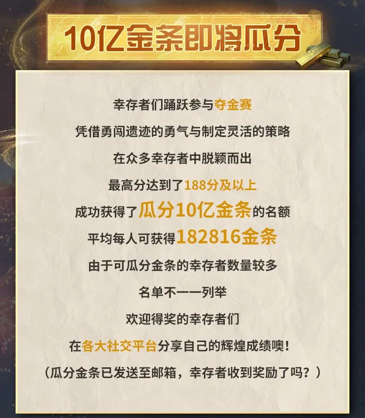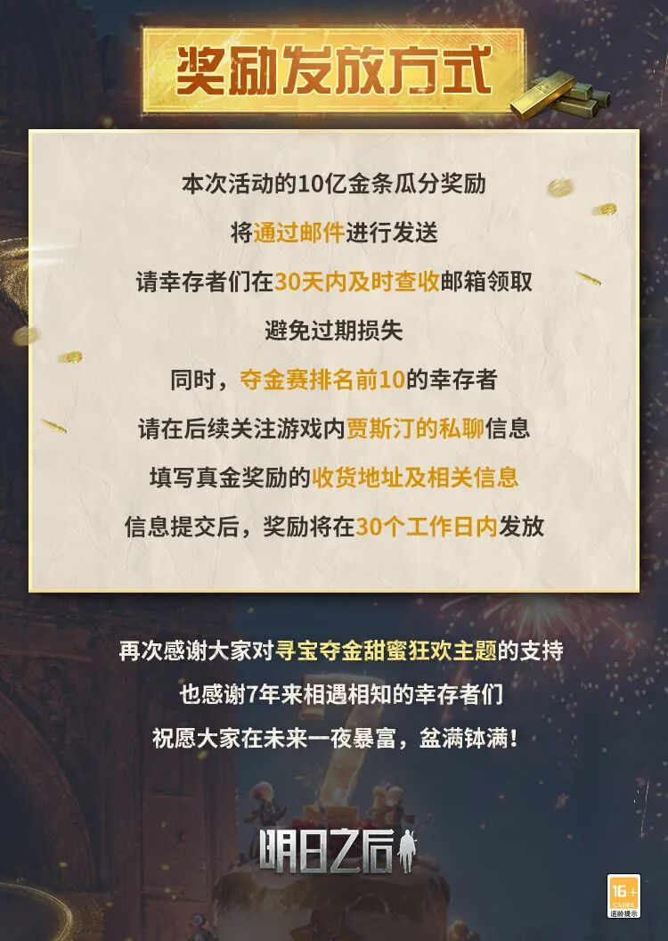 手机游戏> 明日之后> 游戏新闻> 寻宝夺金甜蜜狂欢落幕获奖名单闪耀揭晓