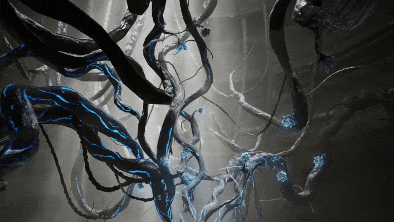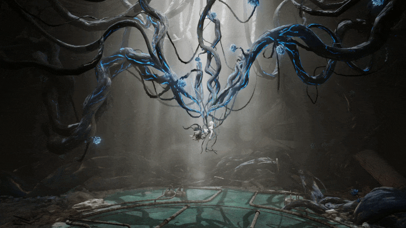 纠缠的藤蔓、幽蓝的微光、苍白的皮肤