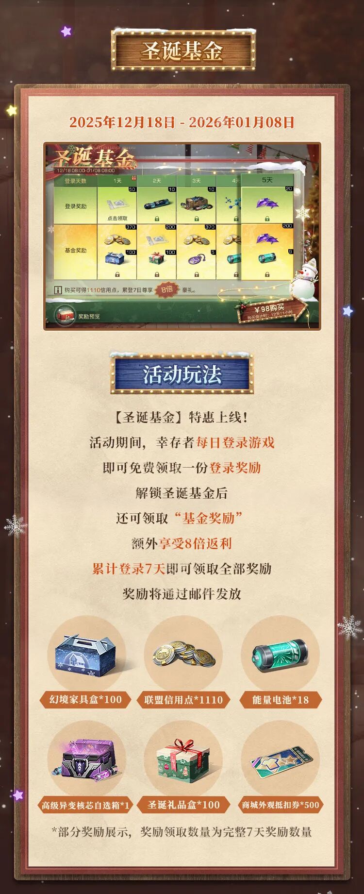 手机游戏> 明日之后> 游戏新闻> 璀璨星光点亮暖冬领节日限定家具享8倍超值返利!