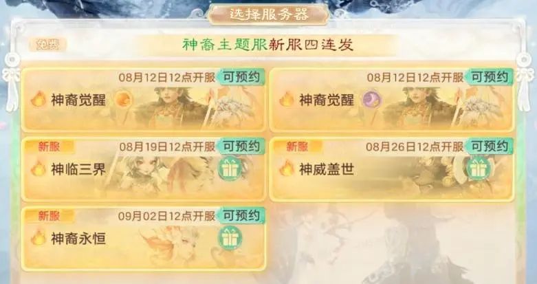 神裔觉醒,超级新服四连发!整整八月,惊喜不停,福利不停!九州三界等你开创全新格局!