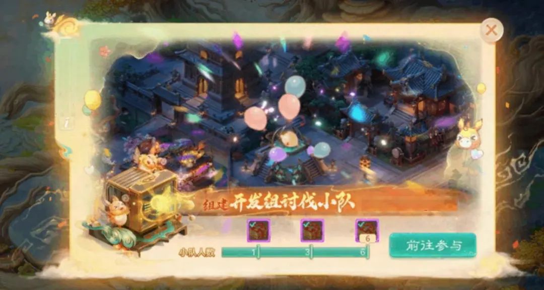 分享链接至社交平台,通过组建暴打小队,一起从不夜长安城穿越到大话开发组吧!小队人数达标即有机会获得1级五行材料、龙之骨、聚魄丹、见闻录等好礼!