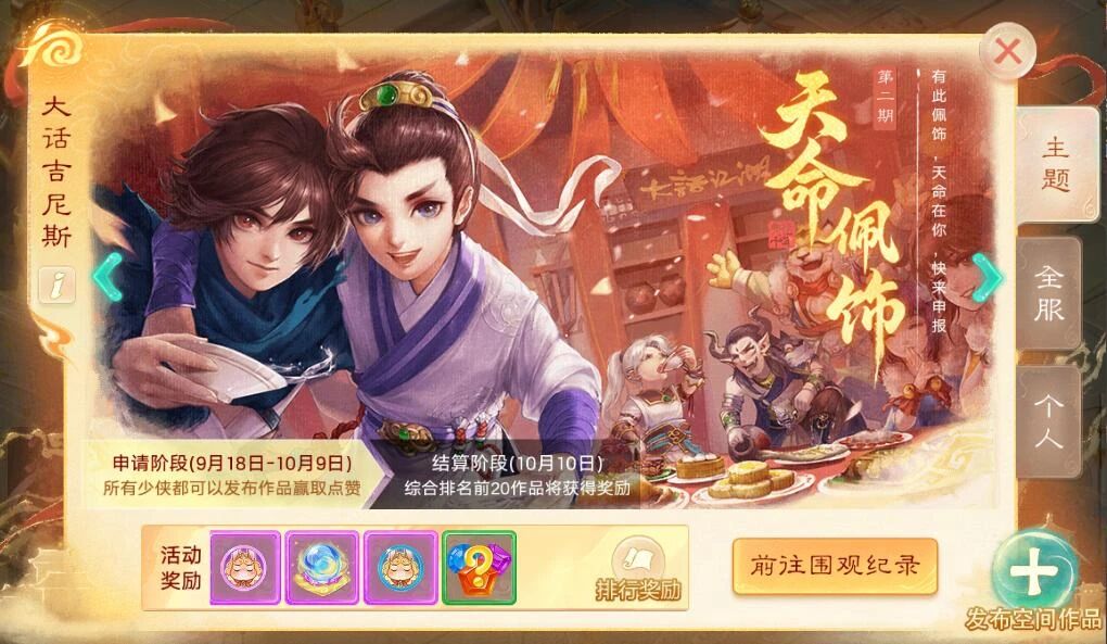 1)9月18日 10:00,大话吉尼斯新主题-天命佩饰申报纪录开启;