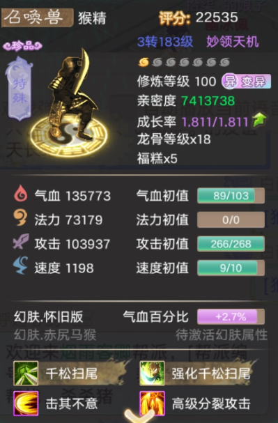 《大话西游》千敏猴10万血10万攻算什么水平?