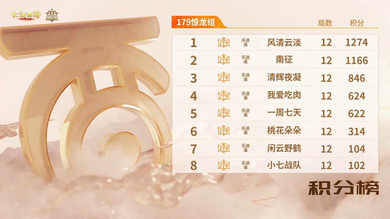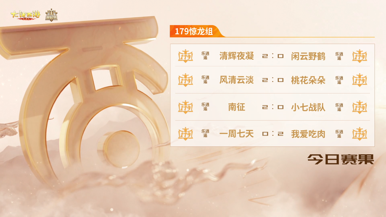 179惊龙组昨天(11月21日)由『乐逍遥』服务器【清辉夜凝】对阵【闲云野鹤】,【风清云淡】对阵【桃花朵朵】,【南征】对阵【小七战队】,【一周七天】对阵【我爱吃肉】。