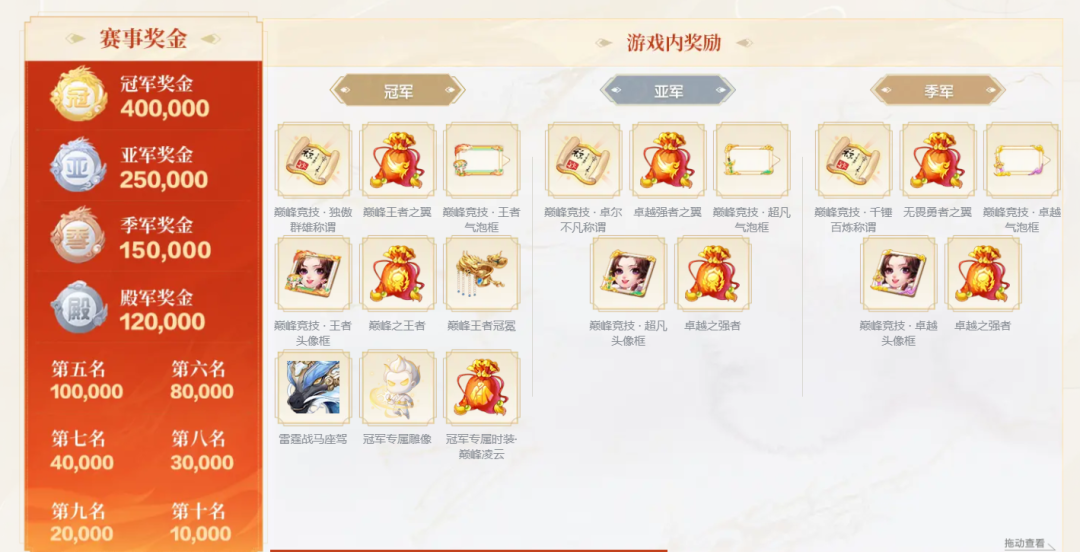 参赛战队不仅获得丰富精美的游戏道具奖励,同时还将获得丰厚的现金奖励!