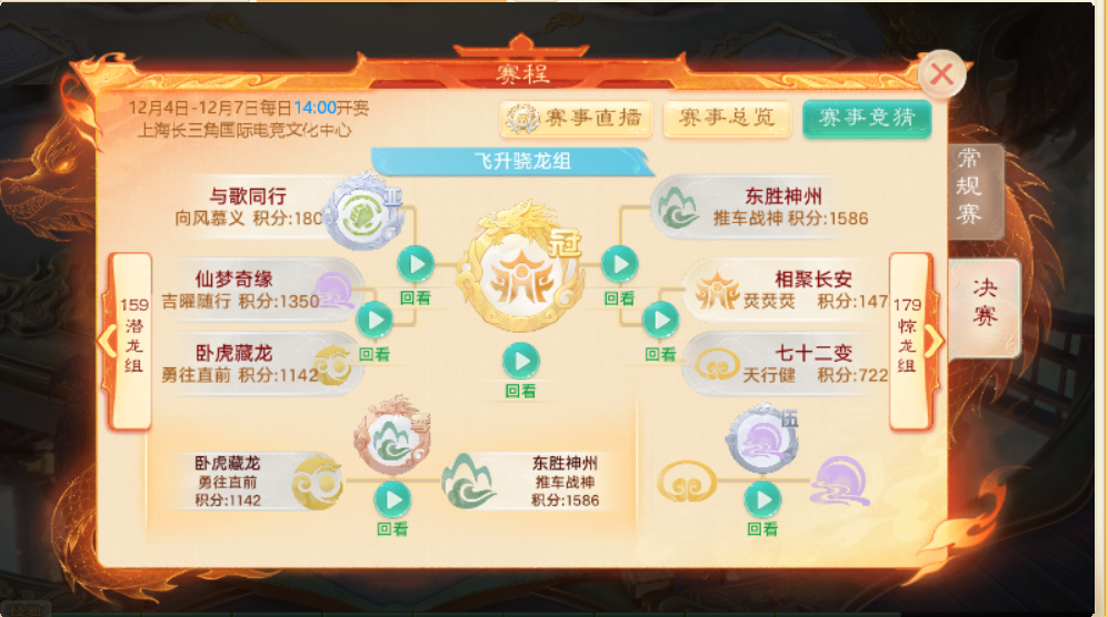 在此,恭喜来自『相聚长安』服务器【烎烎烎】战队获得飞升骁龙组冠军;恭喜与歌同行服务器【向风慕义】战队获得飞升骁龙组亚军;恭喜『东胜神州』服务器【推车战神】战队获得飞升骁龙组季军;恭喜『卧虎藏龙』服务器【勇往直前】战队获得飞升骁龙组殿军;恭喜『仙梦奇缘』服务器【吉曜随行】战队获得飞升骁龙组第五名;恭喜『七十二变』服务器【天行健】战队获得飞升骁龙组第六名。