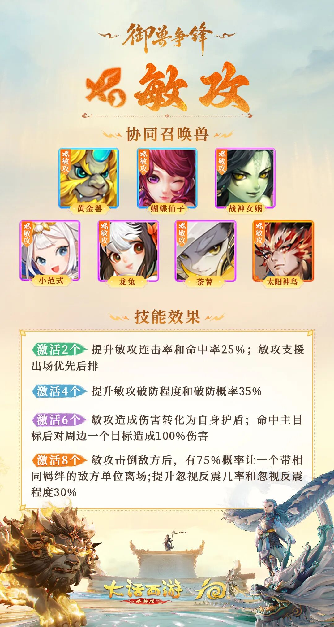召唤兽羁绊是《御兽争锋》玩法的核心策略支点,不同类型的羁绊各有妙用:战斗类型羁绊直击对局攻防痛点,阴阳五行羁绊暗藏属性克制玄机,更有特殊效果羁绊触发扭转战局的惊喜特效。如: