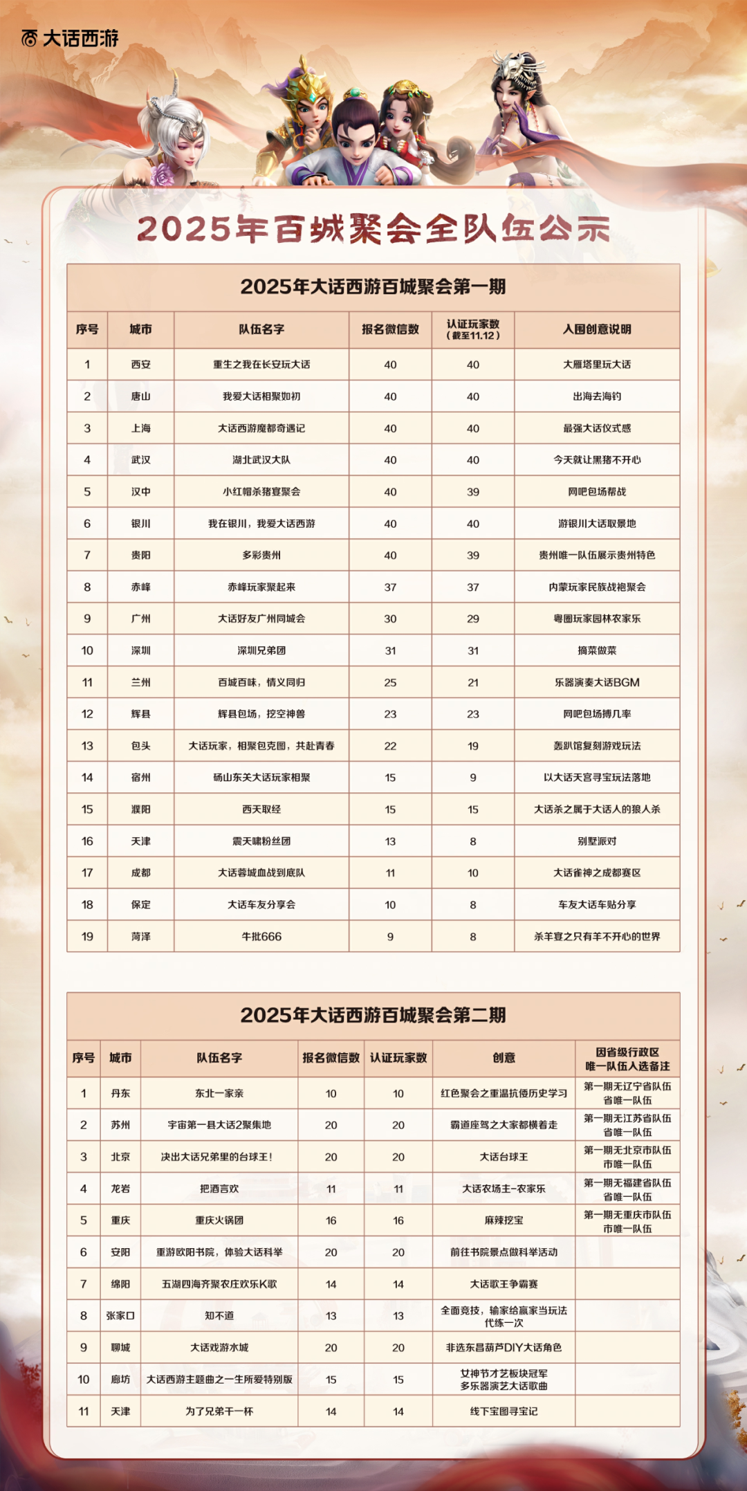 手机游戏> 大话西游手游> 游戏新闻> 2025年百城聚会正式结束(含两期全队伍名单)