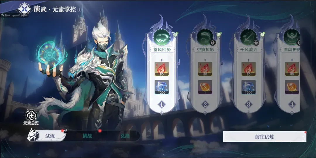 【元素掌控】分为元素试炼和元素挑战两个部分。