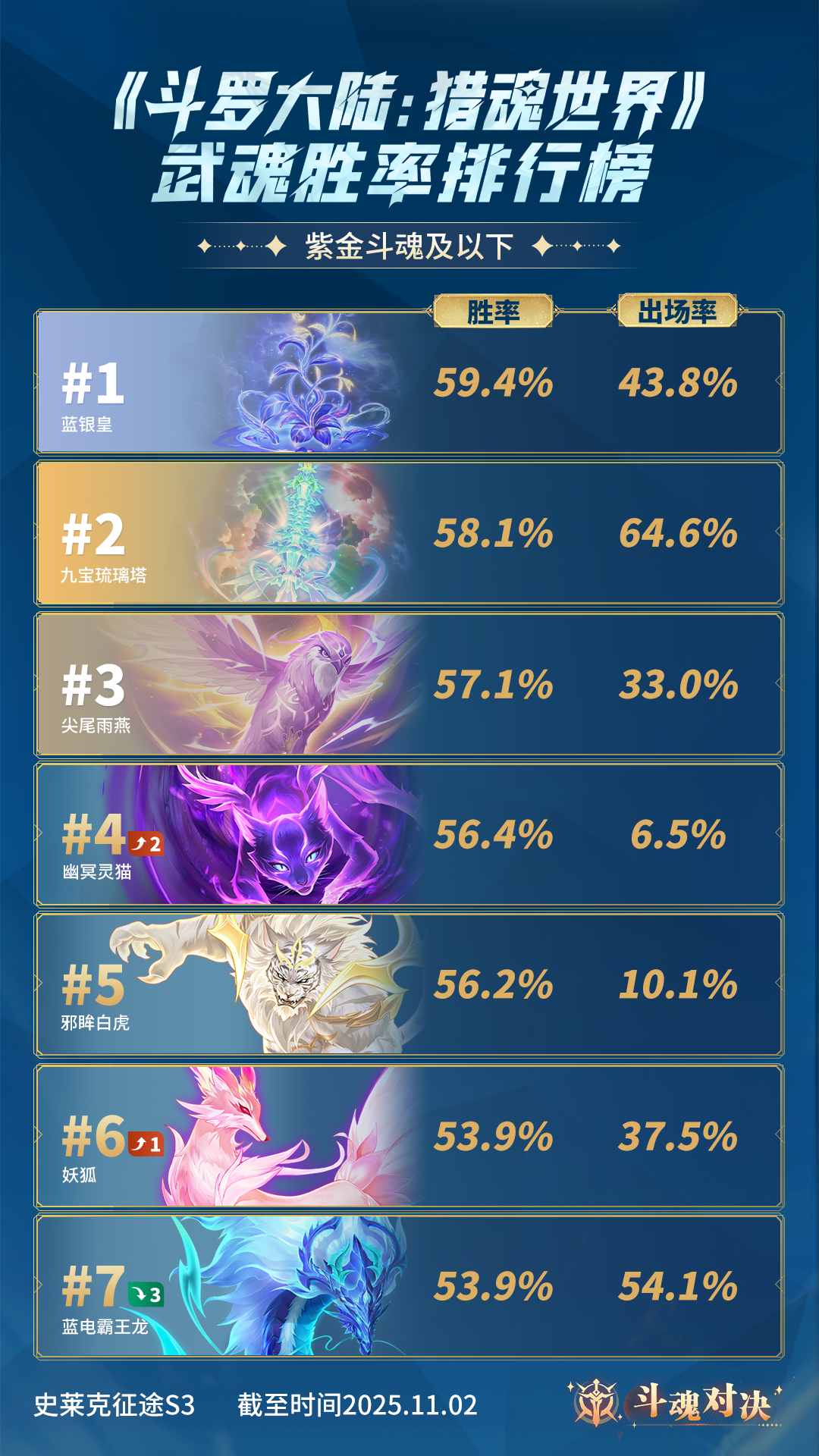 斗魂周报No.11 | 斗魂对决武魂胜率排行榜