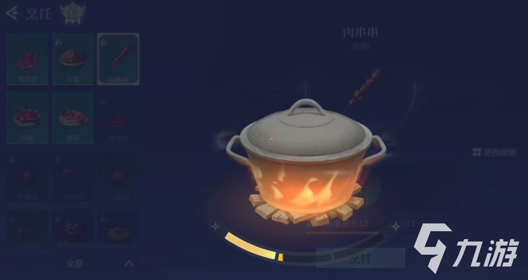 在游戏中想要获得各种各样的食物,有两个主要的途径,分别是自己动手制作和商店购买这两类。先来看下自己制作的方式。在大地图中分布着很多制作美食相关的资源,采集到的各种食材,通过钓鱼获取的鱼类等都属于食材。然后在地图中找到小烧锅,就可以利用烧锅来自己动手烹饪美食了。点击小烧锅就可以看到当前已经学会的所有配方,要想自己制作美食,必须先解锁对应的配方,配方可以通过完成任务的方式获得,也可以选择在商店中直接购买。