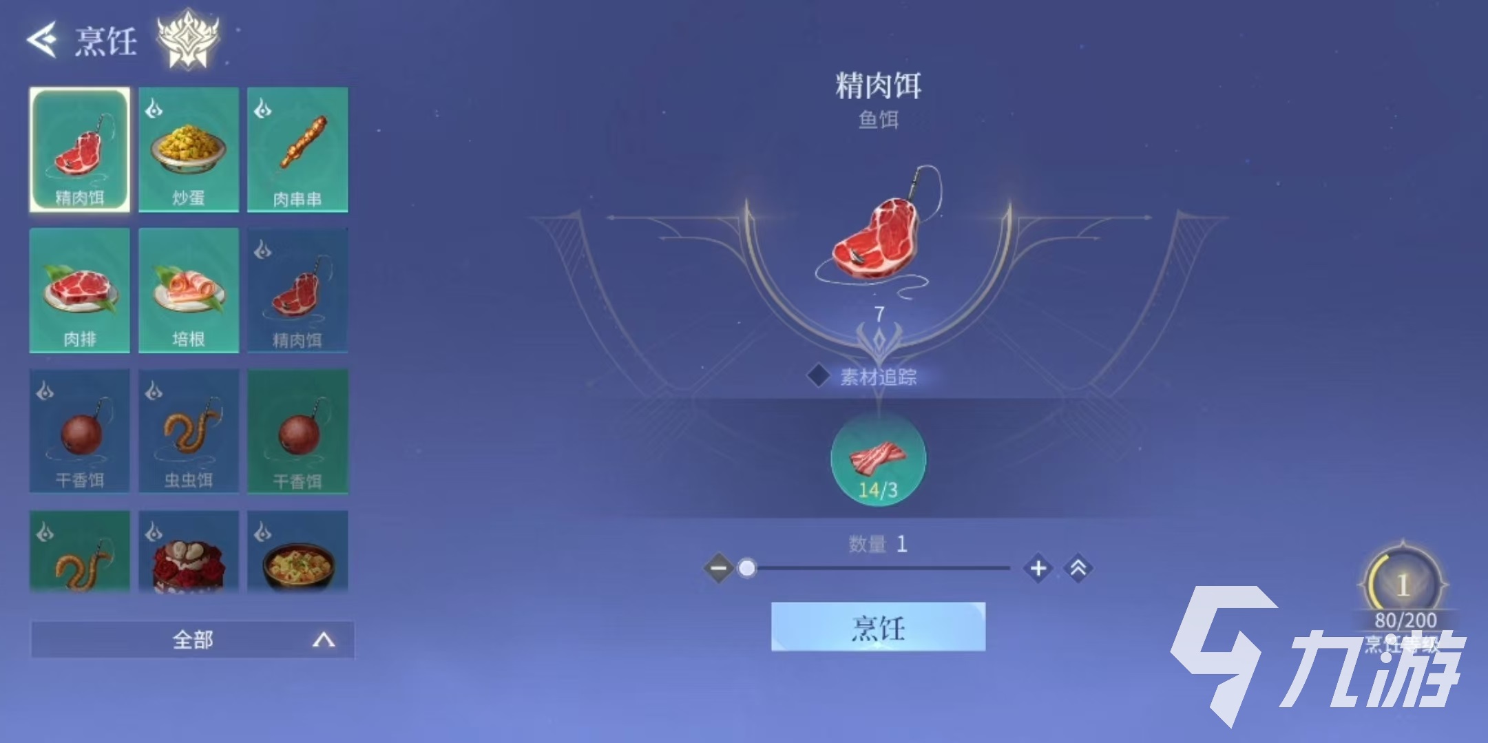 选择好要制作的美食之后就会显示出对应的材料,游戏还非常贴心地加入了素材追踪功能,如果手中的素材不够,直接点击追踪,就可以引导去大世界中探索获得,非常方便。集齐材料之后直接点击烹饪,就能够制作成功了。每成功一次,都可以提升相应的熟练度,增加熟练度之后,就能提升烹饪等级,等级越高制作出高品质食物的几率也就越高。一些比较稀有的食物,也只有高级的烹饪大师才可以制作出来。在制作过程中还会出现一段动画非常逼真。