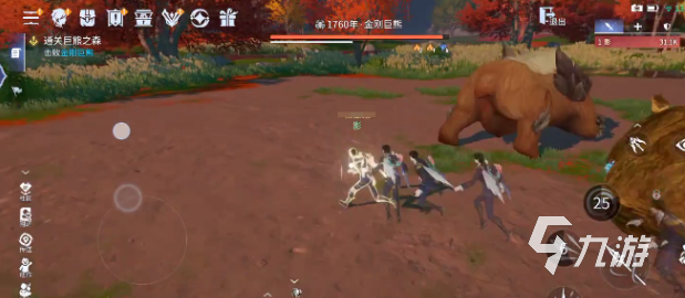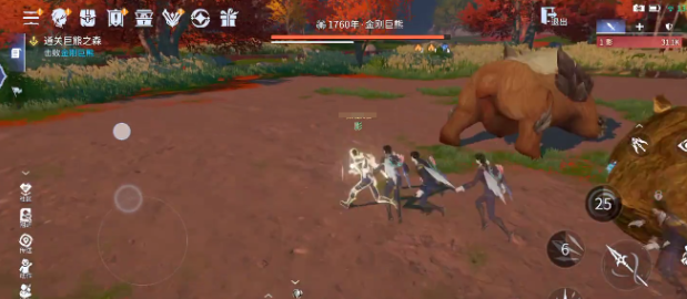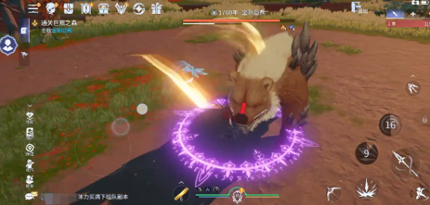 先看巨熊之森BOSS,首先通过移动的方式跨越一些地形,并且将路径上的小怪都处理掉;在面对大BOSS的时候,BOSS会直接向玩家冲击,此时可以看一下BOSS出招的红圈,这是他攻击的范围,可及时通过控制技打断,在范围内使用紫色技能,迅速远离,就能避免承受高额伤害。