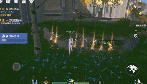 广袤的地图上隐藏着无数宝箱,靠近时会有提示光效。开启它们,收获金币、材料、装备甚至稀有道具,地图上还分布着各种可采集资源点(植物、矿脉、树木等),采集它们是制作药品、烹饪美食、打造/强化装备的基础,生活技能也是变强的重要途径哦~