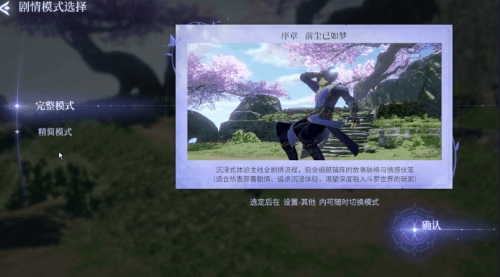 游戏剧情有两种模式选择,可在设置-其他中,随时根据心情和需求自由切换“完整”或“精简”模式,节奏完全掌握在自己手中。