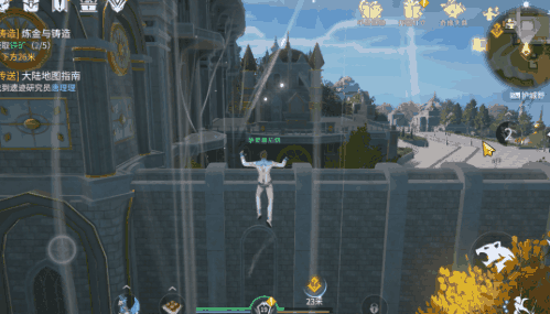一些石板会释放上升气流,借助上升气流,可飞往高处,需要注意的是借助气流时要操控移动轮盘寻找合适落脚点,或者是及时使用钩锁前往高处。