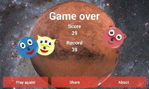 DoblitasFun is a funny game for the whole family that will be enjoyed by children and adults. Small creatures called Doblitas have come to the Earth to play with you, they are very unruly aliens and your goal is to hunt them one by one following a color code as the Doblitas will indicate to you. Mix all touches of classic games like Simon, Space Invaders, PacMan or Candy. It can also help us improve our psychomotor skills, coordination and train our sight due to your quick eye movement as they won't remain stuck in the same point.How to play: Doblitas Fun - STEP 1: Know your goal. - STEP 2: Find it. - STEP 3: Catch it touching the screen. If you catch it, you will win a point. If you fail, you will lose an attempt. Attempts are represented with three hearts in the upper right corner of the screen. - STEP 4: Now you goal changes. Repeat steps 1, 2, 3 and so on. - STEP 5: Enjoy it!Try to get the maximum number of points and remember that you have only three attempts.The game is a bit difficult at first, like the popular game Flappy Bird, but everybody can improve easily with some practice!