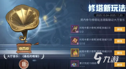 我们在活动期间参与修塔玩法的话是可以获取到不少的奖励的,这些奖励包括祈福绘马,花札等等。除此以外还能获取到音乐,最后的晚餐。如果对于该音乐十分喜爱的话大家不要错过了。