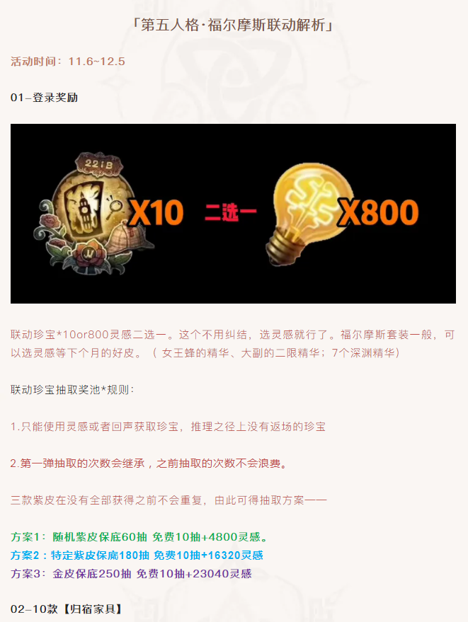 【攻略分享】福尔摩斯联动攻略,3套最佳购物方案,灵感可留不留