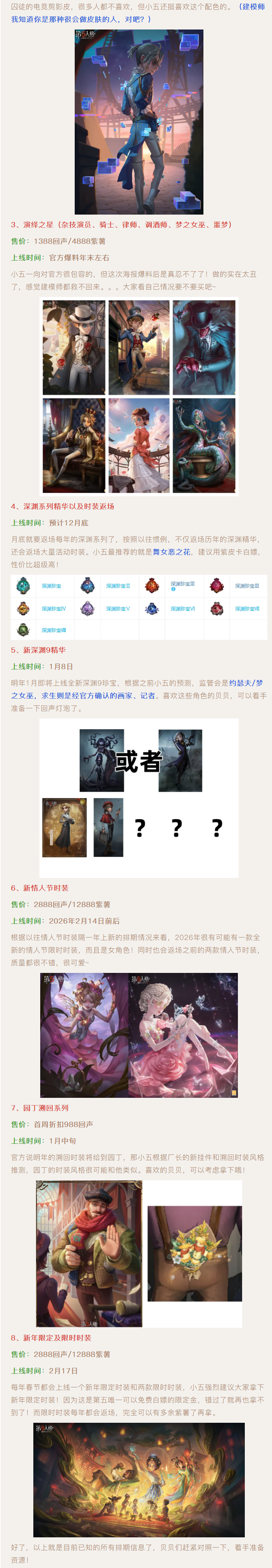 手机游戏> 第五人格> 游戏新闻> 【攻略分享】2026已知排期大汇总!赶紧囤紫薯、回声!
