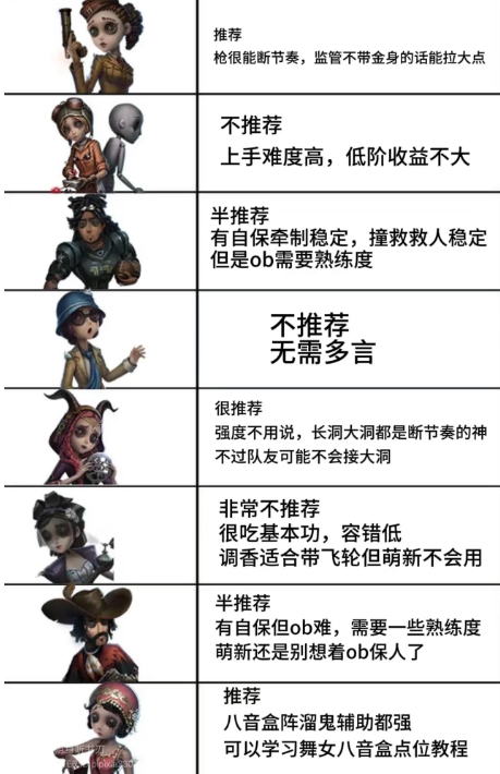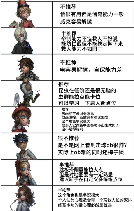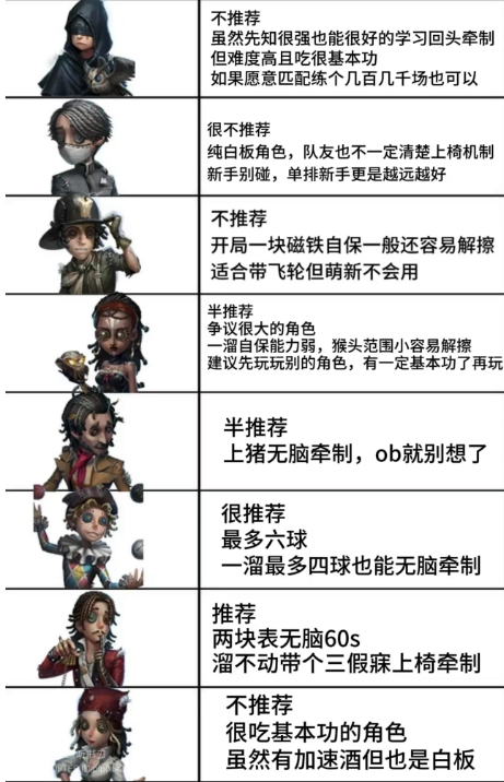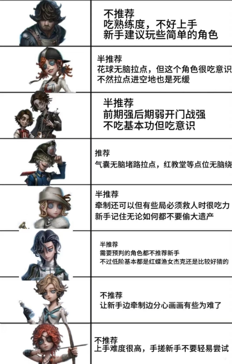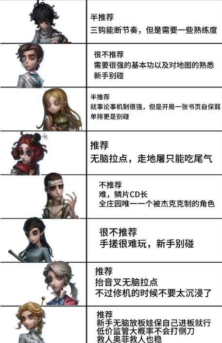 手机游戏> 第五人格> 游戏新闻> 【攻略分享】现版本角色上手难度分析,全角色难易程度盘点,要练新人嘛?